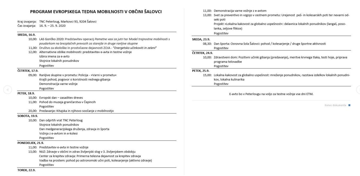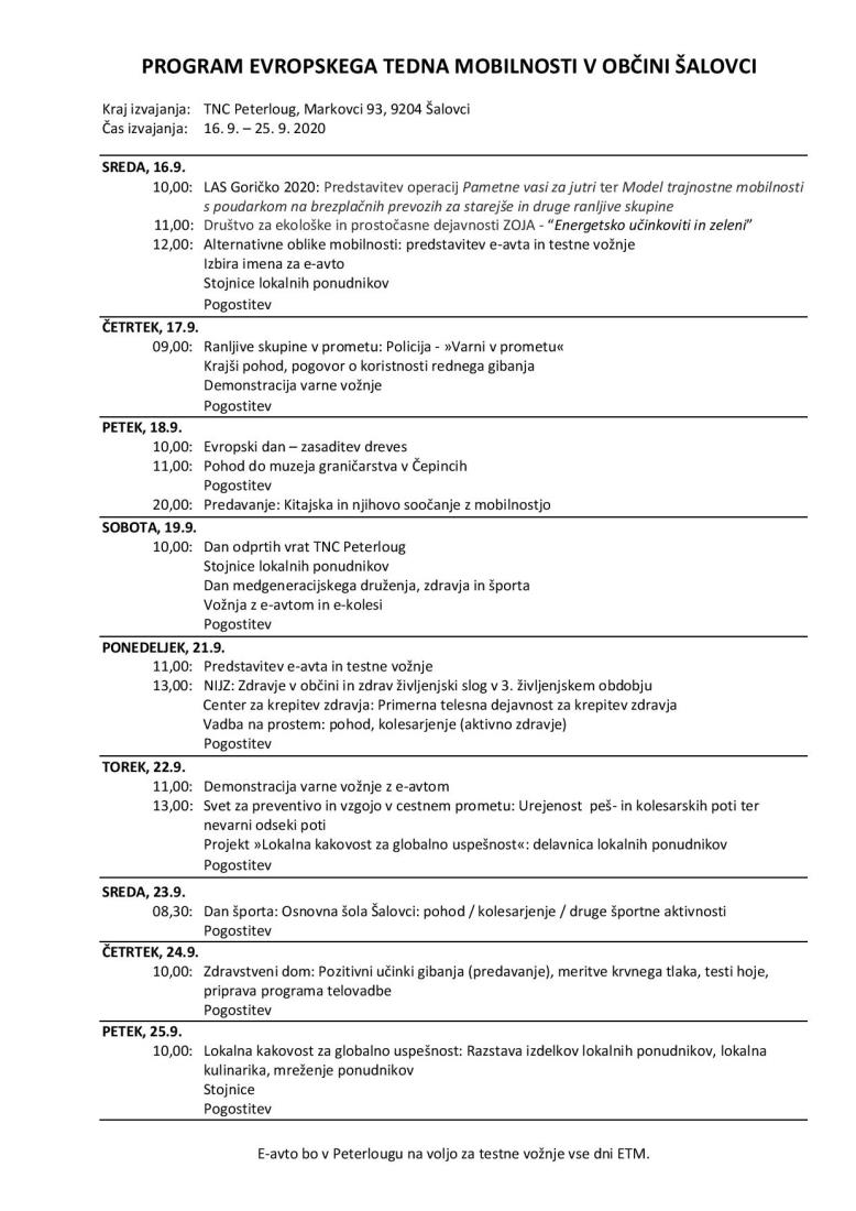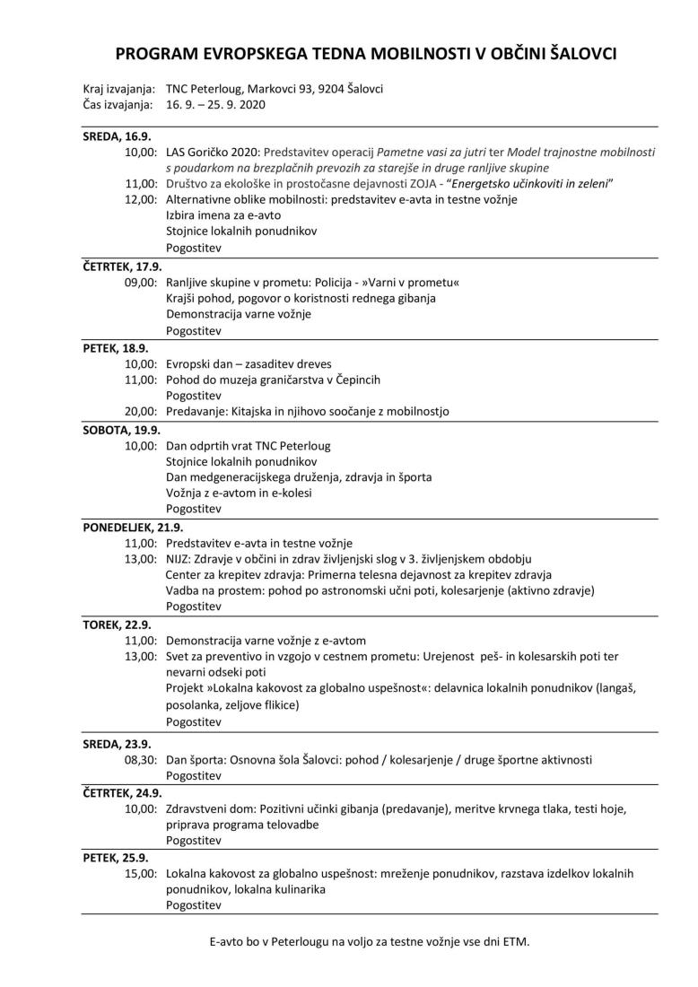 Občina Šalovci se je odločila, da bo sodelovala pri izvedbi letošnjega Evropskega tedna mobilnosti (ETM), ki sicer poteka od 16. do 22. septembra. Poglavitni cilj je osveščati prebivalstvo o pomenu rabe trajnostnih načinov mobilnosti.