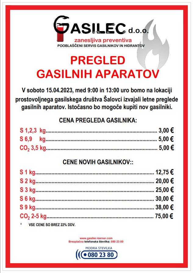 Pregled gasilnih aparatov v Šalovcih