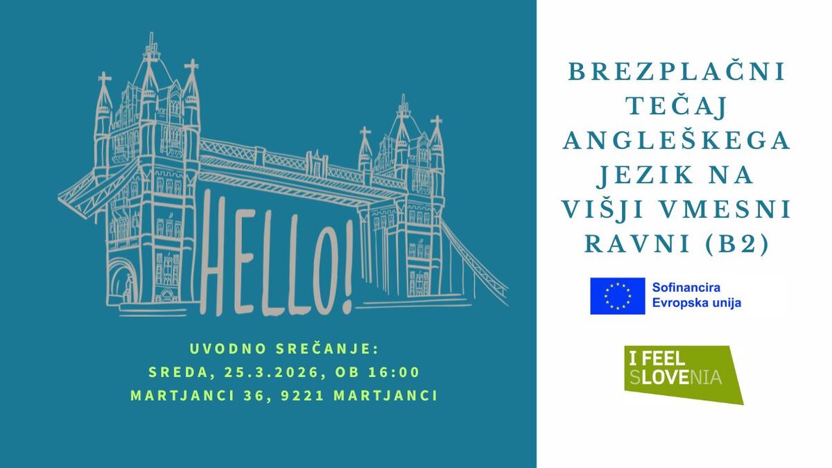 Lokalna razvojna fundacija za Pomurje vabi k vpisu v 12-dnevni TEČAJ ANGLEŠKEGA JEZIKA (VIŠJA VMESNA RAVEN – B2).
